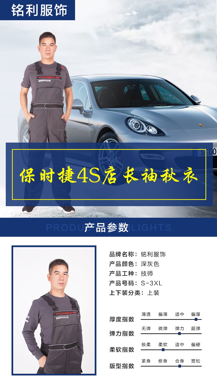 春秋款保时捷工装长袖工作服加工